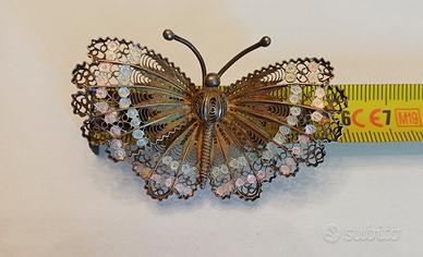 farfalla in filigrana argento smaltata primi anni 80, 6 cm di apertura alare