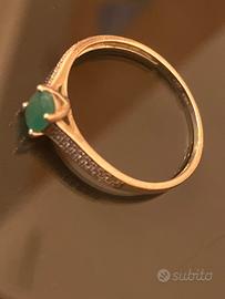 anello charlotte oro bianco 9 carati, con pietra smeraldo. Scritte interne che ne confermano l’originalità. Buone condizioni, del tutto intatto.