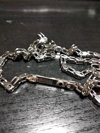 Nello specifico, vendo un bracciale in cuoio e acciaio marca POLICE, con chiusura calamitata; un bracciale in acciaio marca 2 JEWELS; una collana in acciaio marca MOOBY.