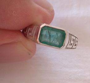 Anello argento 925 sterling fatto a mano, con smeraldo colombiano di 2.19ct ottima pietra naturale certificata.