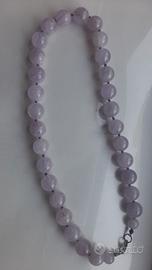 Collana in quarzo tinto glicine con mollettone in argento