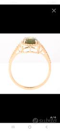 Vendo elegante anello in oro giallo 14 carati, impreziosito da una splendida acquamarina naturale da 1,68 ct, taglio ovale, montata su raffinata struttura con diamanti naturali laterali.