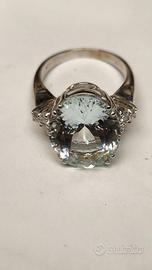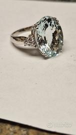 Anello in oro bianco grammi 7,5 con acqua marina ovale naturale di 13 carati, 6 brillanti colore F/G di peso totale 0.27 punti di carato.