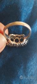 anello trilogy in oro bianco dal peso di 10 g con rubini kt3,90 contornato di diamanti kt 1,80 colore G purezza IF