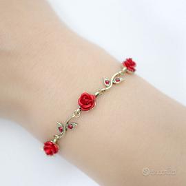 Set di gioielli a tema "Rose" composto da 4 pezzi: collana, 2 orecchini e bracciale.