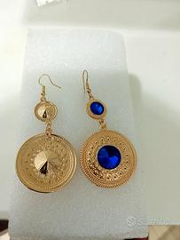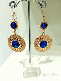 orecchini bellissimi etnici colore oro e cristallo blu