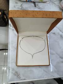 Vendo prestigioso girocollo semirigido originale firmato RECARLO, eccellenza dell'alta gioielleria italiana. Il gioiello è realizzato in Oro Bianco 18kt (punzonato 750) ed è impreziosito da splendidi diamanti naturali taglio brillante incastonati a scalare (degradè) sulla parte centrale a "V".