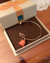 bracciale Thun rigido dorato e orecchini coordinati con tulipani arancioni. nuovi, mai indossati.