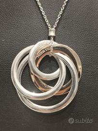 5) Collana Tiffany & Co. in argento 925 con pendente a cerchi grandi intrecciati in argento sterling e RUBEDO® Metal, proveniente dalla collezione Tiffany 1837™, lunghezza cm 52.