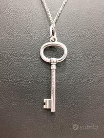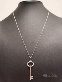 4) Collana Tiffany con pendente chiave in argento 925, su catena Tiffany lunghezza cm 46, in argento sterling 925.
