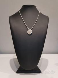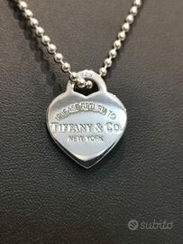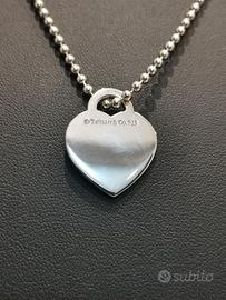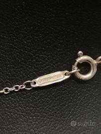 2) Pendente Tiffany & co. “Heart tag” in argento 925, misura media, 2,00 x 2,50 cm., su catena a palline lunghezza cm 45, in argento 925, Thomas Sabo. Scatola e pochette NON incluse.