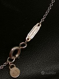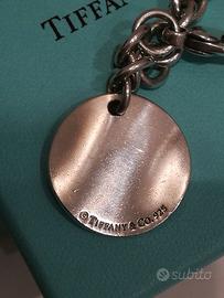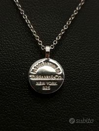 3) Pendente Tiffany & co. “Round tag” in argento 925, misura mini, 1,00 x 1,40 cm., su catenina rolò lunghezza cm 46, in argento sterling 925 Tiffany.