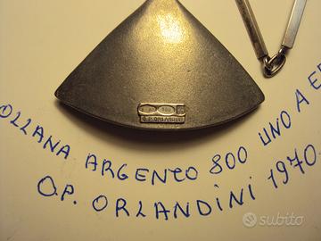 Parure composta da tre rari gioielli in argento massiccio 800 : Collana girocollo - Braccialetto - Anello , tutti con impresso il loro originale marchio " 1 AR 800 UNO A ERRE O.P Orlandini " (vedi foto) . Si tratta di tre opere vintage di arte "Pop" dell'epoca,oggi quasi introvabili,nella sua completezza d'insieme,di uno dei più grandi designer ed artisti di quel momento( O.P Orlandini ),protagonista del boom delle catene di vario tipo e soprattutto di uno stile che si inspira alle figure geometriche ed astratte in argento . Tre pezzi che si esaltano e si valorizzano nel loro insieme e insieme alla persona che li porta .Parure in vendita solo e soltanto al completo dell'insieme,spero, bene descritto e comunque a disposizione per qualsiasi altra delucidazione in merito .Valuto offerte di veri collezionisti o comunque di veri interessati .