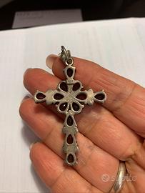 Croce tempestata di granate e marcasiti, mancano due pietrine.