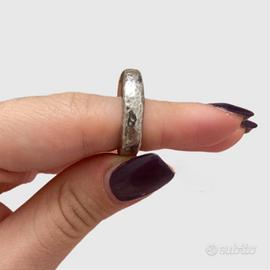 L'anello Martellato di Giovanni Raspini viene realizzato completamente in azienda con la tecnica tradizionale della fusione a cera persa. Martellato e quindi brunito, il gioiello fascia il dito con forte personalità, regalando tutta la limpida luminosità dell'argento.