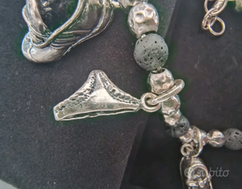Braccialetto con sette charms (delfino, mutandine, borsetta, scarpa ginnastica, scarpetta da bimba, lettera M, numeri 4 e 2) in argento GIOVANNI RASPINI, nuovo, mai indossato, perfetto, nuovo con scatola: si tratta di un regalo mai ritirato. Il prezzo non è trattabile ed è comprensivo di spedizione