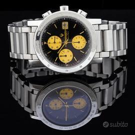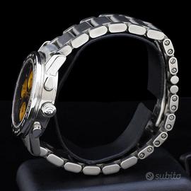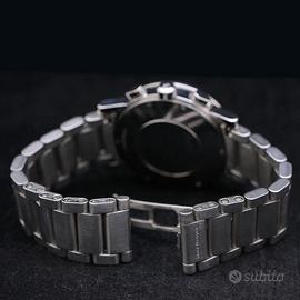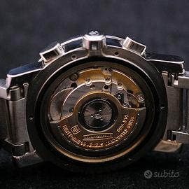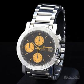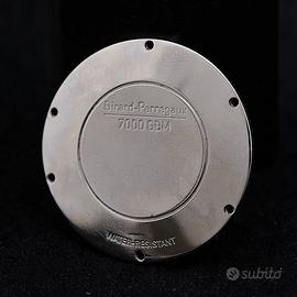in acciaio braccialato cassa di 38 mm escluso corona quadrante nero leggermente ossidato contatori dorati vetro zaffiro bracciale Girard Perregaux in acciaio con chiusura a doppia deployante movimento meccanico a carica automatica calibro GP 800-914 perfettamente funzionante revisionato originale Girard Perregaux (non trattiamo falsi) in buone condizioni !! rilasciamo fattura di vendita nella quale certifichiamo l'orologio spediamo gratis in tutto il mondo