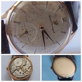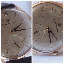 Dalla mia collezione privata , per rinnovo collezione girard perregaux carica manuale in oro rosa 18 k anni 60 , con piccoli secondi a ore 6 la cassa misura 36 mm circa esclusa la corona , orologio originale perfettamente funzionante fatto revisionare nel 2023 con cinturino nuovo non originale e fibbia generica , vetro plastica unico inconveniente presenta dei segni del tempo sul quadrante , che non pregiudicano l utilizzo no scambi no offerte ridicole verranno subito cestinate , solo consegna a mano previa accordi su Reggio-emilia e zone limitrofe , le fotografie sono parte integrante della vendita
