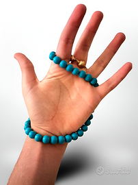 Collana Vintage Pasta di Turchese 45 cm Descrizione: Autentica collana vintage anni ’70, realizzata con perle tonde in pasta di turchese dal colore intenso e uniforme. Modello girocollo elegante, completato da chiusura a vite dorata originale e funzionante. Caratteristiche principali: Lunghezza: circa 50 cm Peso: circa 55,4 g Diametro perle: circa 10 mm Materiale: pasta di turchese (effetto turchese realistico, non pietra naturale) Chiusura: dorata, originale e funzionante Condizioni: Ottime condizioni generali Minimi segni d’uso dovuti all’età Ben conservata, pronta per essere indossata o regalata Perché comprarla: Gioiello originale anni ’70 Elegante e senza tempo Ideale per appassionati di bijoux vintage e collezionisti Spedizione rapida e sicura: Consegna entro 24/48 ore dall’acquisto Imballaggio accurato e protettivo Possibilità di ritiro a mano su richiesta (zona San Lazzaro di Savena / Casalecchio) Disponibili foto o video aggiuntivi su richiesta Sconto per acquisti multipli Collana vintage raffinata e dal fascino retrò, pronta a valorizzare ogni look con un tocco distintivo anni ’70. TAG: #CollanaVintage #Anni70 #PastaDiTurchese #GioielliVintage #BijouxRetrò #CollanaElegante #RegaloElegante #AccessoriVintage #SpedizioneRapida