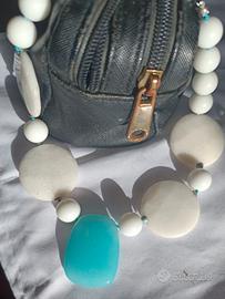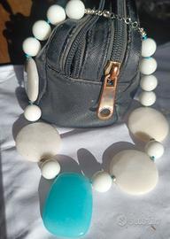 Bellissima collana girocollo in agata bianca con centrale in azzurrite