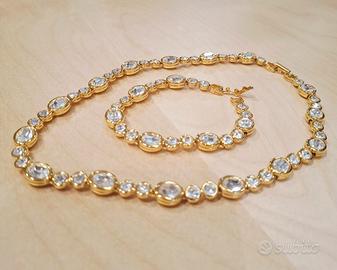 Elegante parure con girocollo e bracciale Swarovski su base dorata. In ottime condizioni, venduto con scatola originale come in foto. codice: 1095549 Disponibile presso il Mercatino di Tradate "Lo Spazio dell'Usato", preferibile contatto telefonico in orario di apertura del negozio al numero