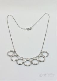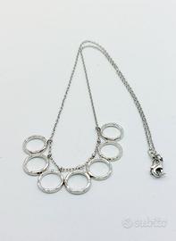 Collana con ciondoli in oro bianco 18KT ( 750‰ ) di grammi 7.65 impreziosita da diamanti naturali forma tonda e taglio a brillante. Scritta Luciano Somenzi