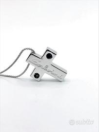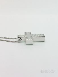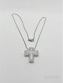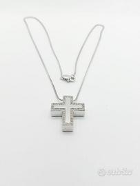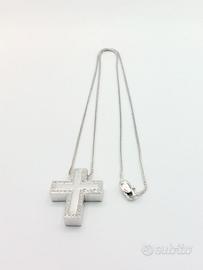 Girocollo in oro 18 KT ( 750 ‰ ) di grammi 16.30 impreziosito nella croce da diamanti naturali taglio brillante per ct. 0.60 purezza VVS colore G. Scritta SALVINI.