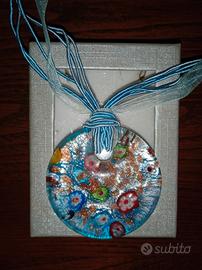 Girocollo con medaglione in vetro decorato molto elegante , colore turchese.