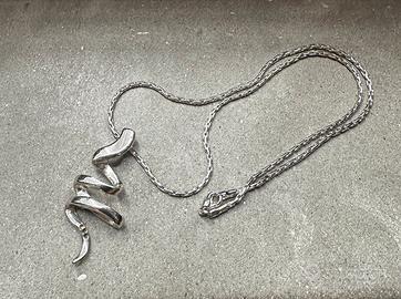 Girocollo maglia lavorata con pendente a forma di serpente. Lunghezza del girocollo 45 cm. Lunghezza del pendente 5 cm.