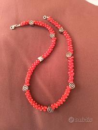 girocollo donna argento 925 con inserti sempre in argento e corallo rosso naturale manifattura artigianale italiana anni 80
