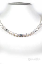 Girocollo di perle bianche coltivate con sfere martellate in oro bianco 750 18kt.