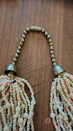 Elegante girocollo composto da numerose fili di perline e perline con chiusua a vite, indossata pochissime volte, comprata da mia mamma nel 1985 , peso netto della callana 123 grammi.