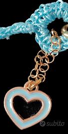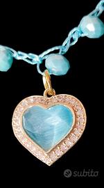 charms in acciaio dorato, cuori smaltati, nappine e pendente centrale in occhio di gatto e Micro strass.