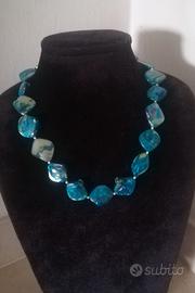 Girocollo donna con perle in conchiglia bluette lavorazione artigianale. Lunghezza cm. 45 p
