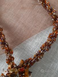 Girocollo Fantasia con Perline toni marrone. Fatto a mano. Nuovo.