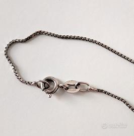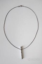 Sottile collana vintage in argento 925 lievemente brunito dal tempo. Ciondolo con elementi blu e trasparenti. Lunghezza totale 41,5 cm. # donna
