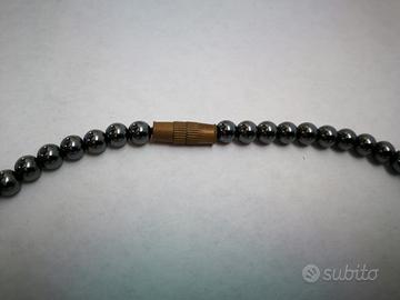 Collana a girocollo in ematite nera. Gancio a vite, lunghezza cm. 48. Collana vintage in ottime condizioni