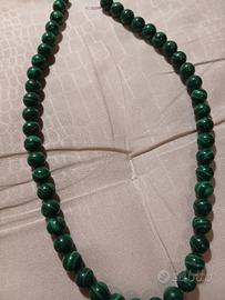 Girocollo in malachite non ha il gancetto. Ma si può mettere Costa di più. Ha 48 sfere. Si può fare un bracciale x sapere chat Grazie