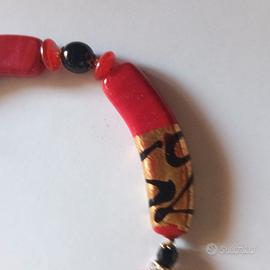 Bellissima collana del marchio La Murrina. I suoi colori principali sono il rosso e l'oro, impreziositi da dettagli neri. Lunghezza 44 cm