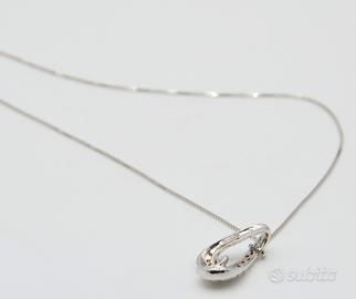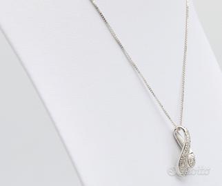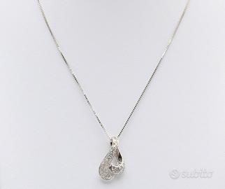 Raffinato girocollo in oro bianco 18 carati, sintesi perfetta di artigianalità e design sofisticato. Il pendente, alto 1,8 cm, è impreziosito da un sontuoso pavé di diamanti da 0,62 carati, selezionati per l’eccezionale brillantezza del colore G e l’estrema purezza VVS.