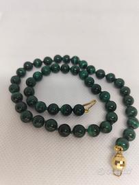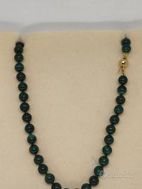 Girocollo in malachite naturale infilata a mano con nodini come si usa in gioielleria.