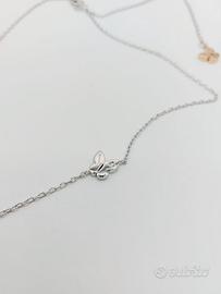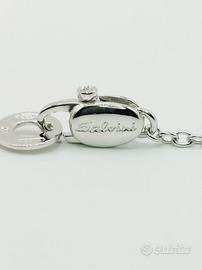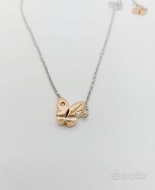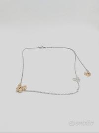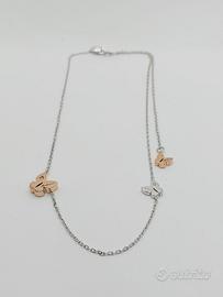 Girocollo in oro bianco e rosa 18 KT ( 750 ‰ ) di grammi 12.10 impreziosito da ciondoli a farfalla con diamanti naturali taglio brillante. Scritta Salvini.