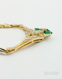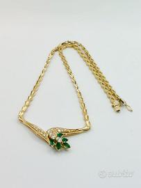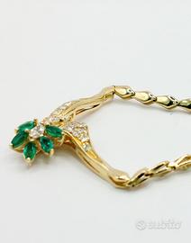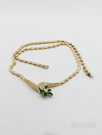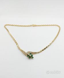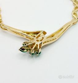 Girocollo in oro giallo 18 KT( 750 ‰ ) di grammi 27.03 impreziosito da smeraldi naturali taglio navette e da diamanti naturali taglio brillante . Scritta Damiani.