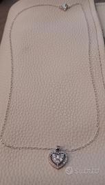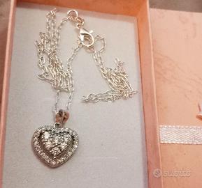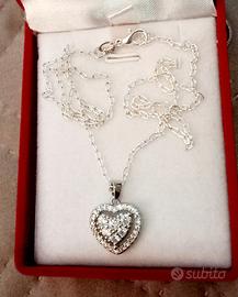 Raffinato,sottile,elegante e luminosissimo girocollo in ARGENTO 925 lucido con punzone sulla chiusura con pendente in acciaio a forma di cuore impreziosito da zirconi sintetici super brillanti.