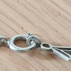 Vendo causa inutilizzo girocollo in argento 800 e smalto blu, tema rombi, ottime condizioni, lunghezza aperta 42 cm circa, astenersi perditempo.