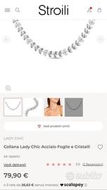 Vendo collana girocollo in acciaio inossidabile e cristalli mai usata. Con SCONTRINO. Acquistata a Stroili oro,con scatola originale.