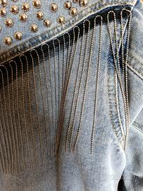 Vendo Giubbino donna jeans con borchie e frange, per inutilizzo, come nuovo messo qualche volta. TG S/M