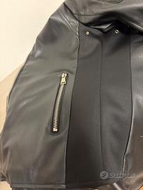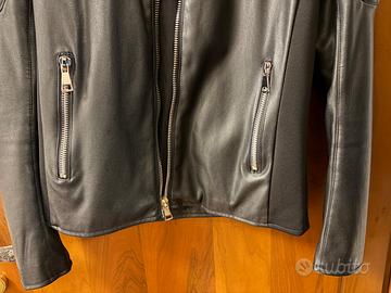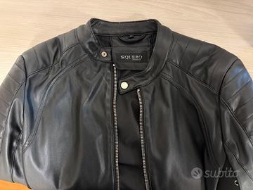 Vendo giubbetto da uomo in eco-pelle (marca Squero) con due tasche anteriori e una interna e chiusura con cerniera. Sui fianchi il giubbetto è in tessuto, come nella foto. Il collo presenta leggeri segni di usura, come si vede nella foto