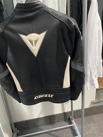 Vendo causa cambio taglia giubbetto in pelle Dainese (pelle bovina).Modello Super Sport . Bellissimo! Colore nero opaco con motivi bianchie . Imbottitura interna fissa softcell, protezioni spalle e gomiti. Tasca per inserimento paraschiena . Cerniera per pantaloni. Condizioni realmente eccezionali: nessun segno, abrasione, graffio. Capo da usarsi nelle mezze stagioni o estate.Manutenuto con estrema cura ( ingrassato ogni inverno ). Cerniere perfette. Vendo SOLO causa cambio taglia , ora mi veste stretto.