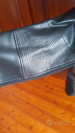 Giubbetto donna in ecopelle nero marchio Fiorella Rubino taglia 50/52. Modello tipo chiodo con lavorazione sulle maniche.Tenuto molto bene perché usato poco. Composizione 100% poliestere. 40 euro. Consegna a mano.